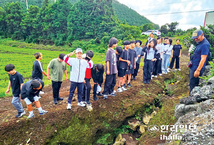 이날 숨골 탐방은 강순석 제주지질연구소장의 학생들의 눈높이에 맞춘 설명으로 진행됐다.