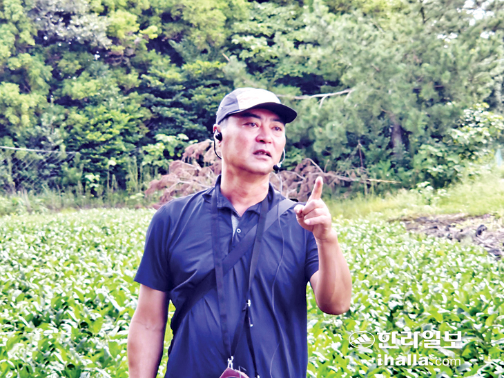 강순석 제주지질연구소장이 숨골에 대한 설명을 이어가고 있다.
