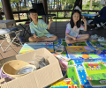| 나무 그늘에서 그림 그리기에 열중하는 참가자들. |