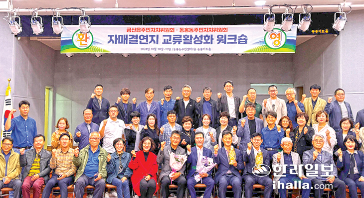 서귀포시 동홍동주민자치위원회(위원장 양기홍)는 지난 18일 동홍동주민센터에서 자매결연지인 충남 금산군 금산읍주민자치위원회(위원장 권문석)와 동홍동주민자치위원회(위원장 양기홍) 등 50여 명이 참석한 가운데 교류 활성화 합동 워크숍을 개최했다.