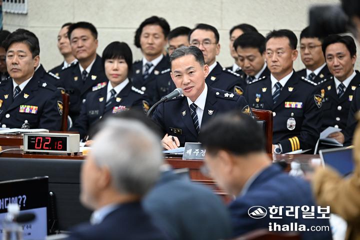 23일 국회 행정안전위원회 국정감사에서 답변하는 김수영 제주경찰청장. 강희만기자