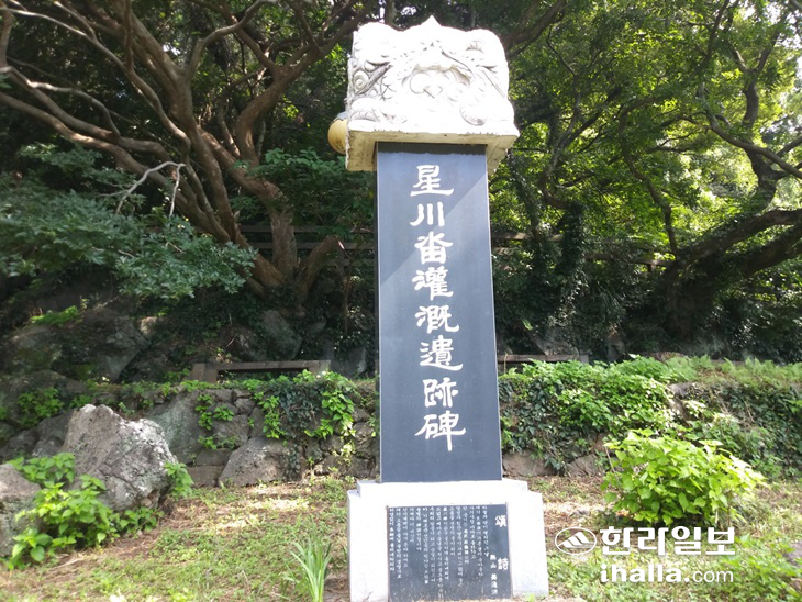 천제연 일원에는 수로의 역사를 담은 빗돌도 놓였다. 주차장 서측의 '통훈대부 대정군수 채구석 기적비(通訓大夫大靜郡守蔡龜石紀蹟碑)'(1958년)와 제3폭포 인근 '성천답 관개유적비(星川畓灌漑遺蹟碑)'(2003년)가 그것이다.