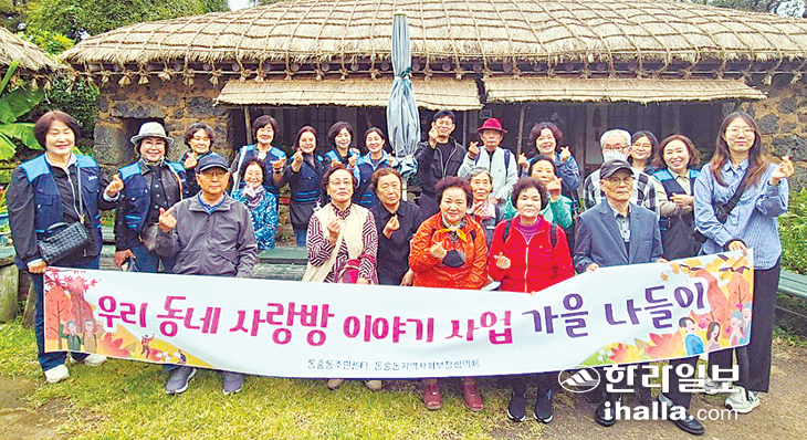 서귀포시 동홍동지역사회보장협의체(공동위원장 정현부·강익자)는 지난 26일 성읍무형문화재전수관에서 지역 내 홀로 사는 어르신과 협의체 위원 30여 명이 참여한 가운데 가을 나들이를 진행했다.
