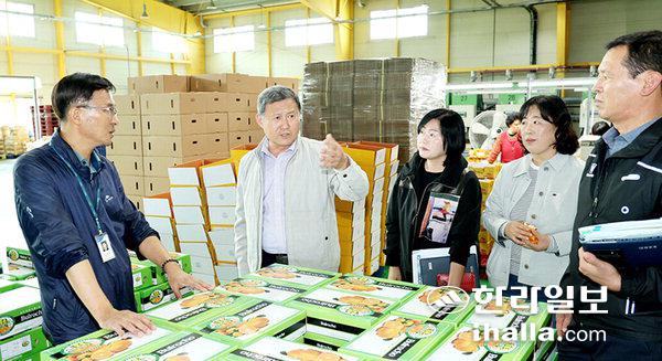 이번 점검은 최근 잦은 비와 이상기온으로 인한 부패 발생 증가 등으로 감귤 가격이 하락하고 있어, 출하 여건을 확인하고 현장의 목소리를 듣기 위해 이뤄졌다.