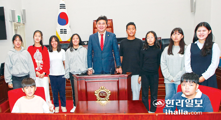 제주특별자치도의회(의장 이상봉)는 5일 도의회 본회의장에서 하례초 학생 9명이 참여한 가운데 청소년 모의의회 의정체험을 진행했다.