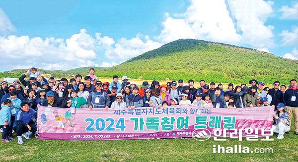 [한라일보] 제주특별자치도체육회(회장 신진성)는 지난 3일 서귀포시 표선면 대록산 일대에서 신청자 35가족 150여 명이 참여한 가운데 '2024 가족참여 트레킹 행사'를 개최했다.