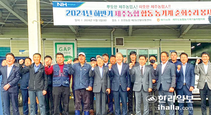 농협제주본부(본부장 윤재춘)와 조천농협(조합장 김진문)은 감귤과 월동채소 수확철을 앞두고 5일 조천농협에서 합동 농기계 순회수리 봉사를 실시했다.