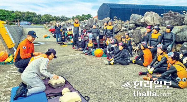 [한라일보] 제주동부소방서 성산119센터 성산여성의용소방대(대장 홍재영)는 지난달 30일 서귀포시 성산읍 고성신양어촌계에서 해녀들을 대상으로 찾아가는 응급처치 교육을 진행했다.