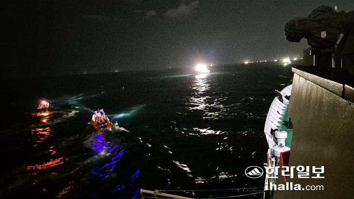 | 8일 제주시 한림읍 비양도 인근 해상에서 부산선적 선망어선 금성호(129t급)가 침몰되는 사고가 발생한 가운데 실종 선원을 찾기 위해 해경이 수색작업을 벌이고 있다. 제주지방해양경찰청 제공 |