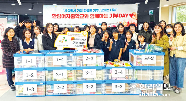 한림여자중학교(교장 양제순)는 서부종합사회복지관 북부기초푸드뱅크(관장 문은정)와 협력해 지난 4~8일 '기부Day를 통해 사랑을 나눠요'라는 주제로 기부Day주간을 진행했다.