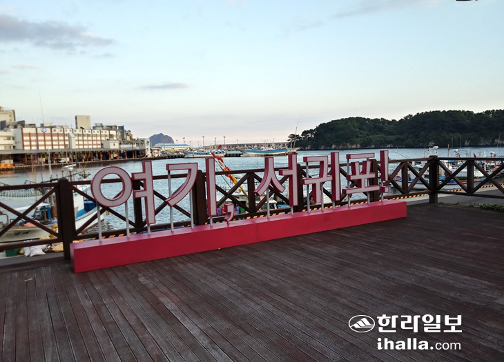 지난해 11월에는 서귀포시에서 제주도의 사용 허가를 받아 '여기, 서귀포!'라는 큼지막한 글자 조형물을 설치했다. 도심 명소를 잇는 도보길로 개발된 '하영올레' 야간 코스 개장에 맞춰 서귀포항과 새섬, 새연교 등을 조망하며 탐방객들이 기념사진을 찍을 수 있도록 하기 위해서다.
