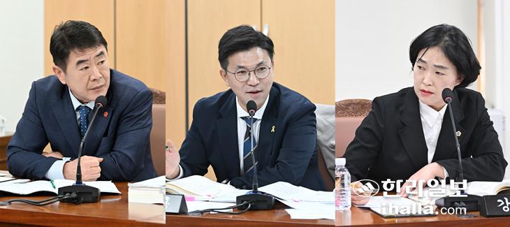 왼쪽부터 임정은 의원, 현지홍 의원, 강하영 의원. 제주도의회 제공