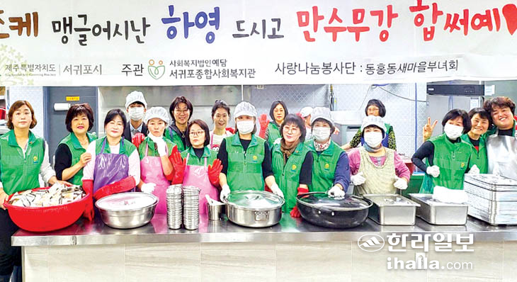 서귀포시 동홍동새마을부녀회(회장 김행미)는 20일 서귀포시노인복지회관에서 회원 20여 명이 참여한 가운데 지역 내 취약계층을 대상으로 급식봉사를 전개했다.