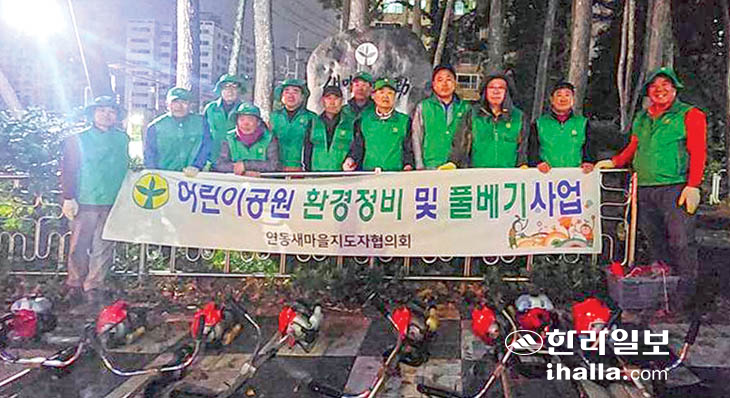 제주시 연동주민센터(동장 원훈철)와 연동새마을지도자협의회(회장 문덕만)는 지난 17일 회원, 공무원 등 16명이 참여한 가운데 지역 내 공원 환경 정비에 나섰다.