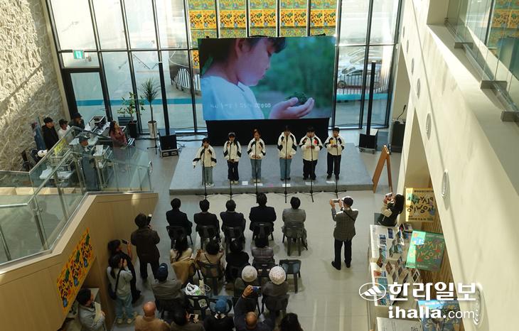 23일 '문화도시 서귀포시 5년 시민공유회' 개막식에서 하례초등학교 어린이들이 축하 공연을 하고 있다. 진선희기자