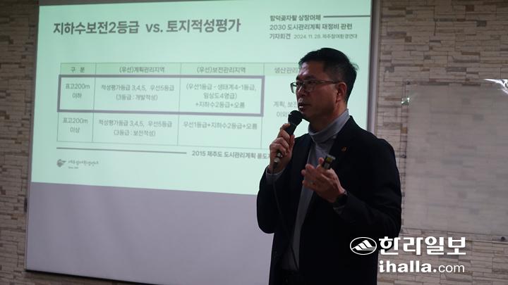 제주참여환경연대(이하 연대)는 28일 교육문화카페 자람에서 기자회견을 열고 "도시계획위원회의 의결은 오염된 자료에 의해 내려진 오염된 결론"이라면서 "시 도시계획과의 대도민 사기극은 공공 복리를 위해 복무해야할 공무원의 본분을 망각한 행위"라고 목소리를 높였다.