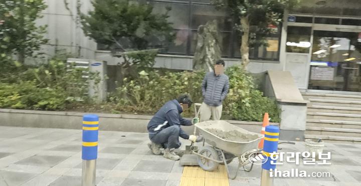 [한라일보] 제주시내 한 인도에 설치된 보도블록이 교체된 지 얼마 되지 않아 심하게 파손돼 보행자들에게 불편을 주고 있다는 지적(본보 11월 29일자 4면보도)에 따라 제주시가 긴급 보수에 나섰다.