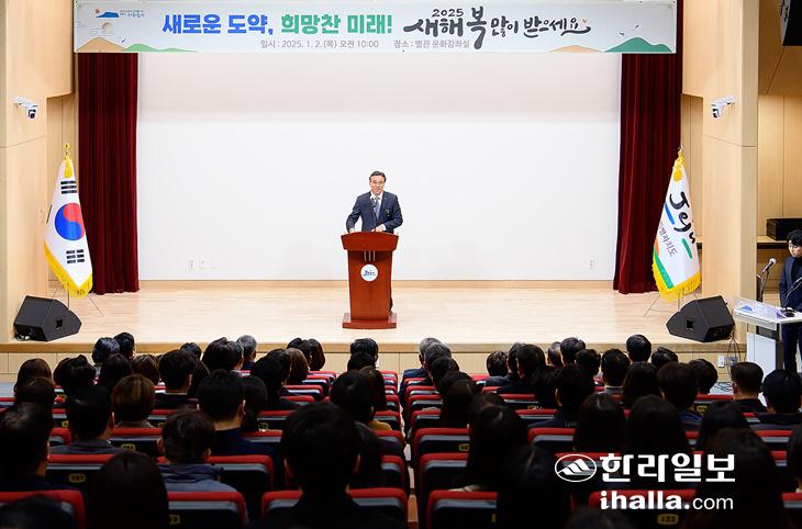 [한라일보] 제주 서귀포시는 2일 오전 시청 별관 문화강좌실에서 2025년 을사년 시무식을 개최했다.