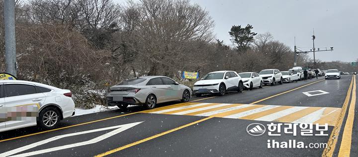 [한라일보] 매년 겨울마다 한라산 설경을 감상하기 위한 탐방객들이 몰리면서 교통혼잡 문제가 반복됐던 1100도로에 대해 행정당국이 불법주정차 단속 강화에 나섰지만 위법 행위는 여전한 것으로 나타났다.