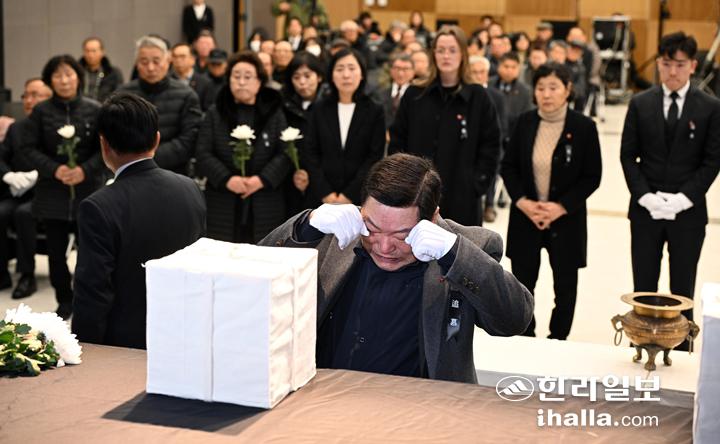 이날 그토록 그리워했던 아버지를 만난 김광익씨는 "아버지가 보고 싶을 때면 알뜨르 비행장 비석에 새겨진 아버지 이름을 만지며 소리쳤다"면서 "아버지 유해를 찾아주고 고향 땅에 묘를 만들 수 있게 해주셔서 감사하다"고 말했다.