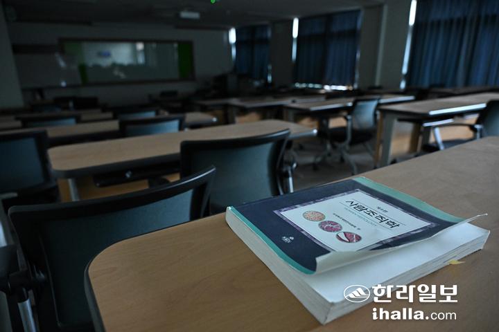 제주대학교 의과대학 개강 첫 날인 4일 의대 강의실 불이 꺼진채 텅 비어 있다. 강희만기자