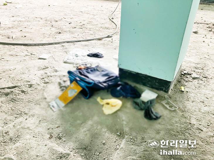 지난 12일 제주시내 한 폐숙박업소에서 50대 A씨가 숨진 채 발견됐다. 사진은 A씨의 소지품으로 추정되는 물품들.