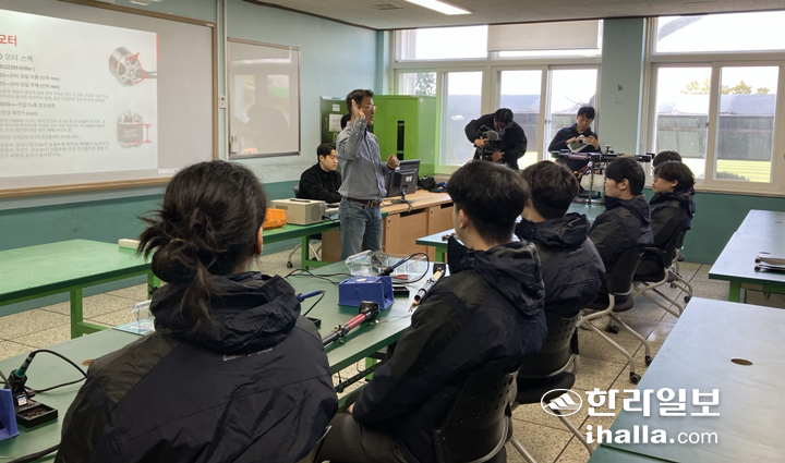 | 18일 제주한림공고는 학부모를 대상으로 항공우주 분야 협약형 특성화 고등학교 교육과정 설명회를 열었다 |