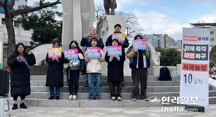 [한라일보] 제주대학교 대학원생들이 윤석열 대통령의 조속 파면과 일상으로의 회복을 염원했다.