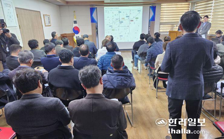 서귀포시는 19일 '명동로 및 이중섭로 보행자 전용길 조성' 주민설명회를 정방동주민센터 회의실에서 개최했다. 문미숙기자