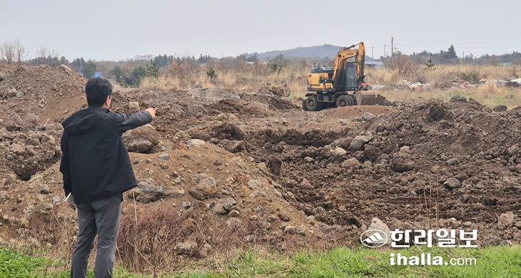 [한라일보] 제주시 도시공원 민간특례사업인 오등봉공원 개발 사업장에서 반출된 막대한 토사가 도내 중산간 일대 임야와 습지, 농경지에 불법 매립되고 있어 논란이 일고 있다. 이에 전체 반출 물량에 대한 전수조사가 요구된다.