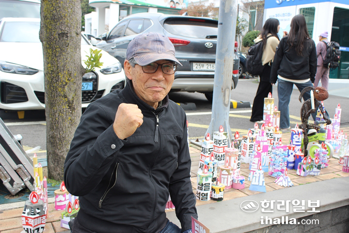 | 문창율 씨와 그가 만든 조형물. |