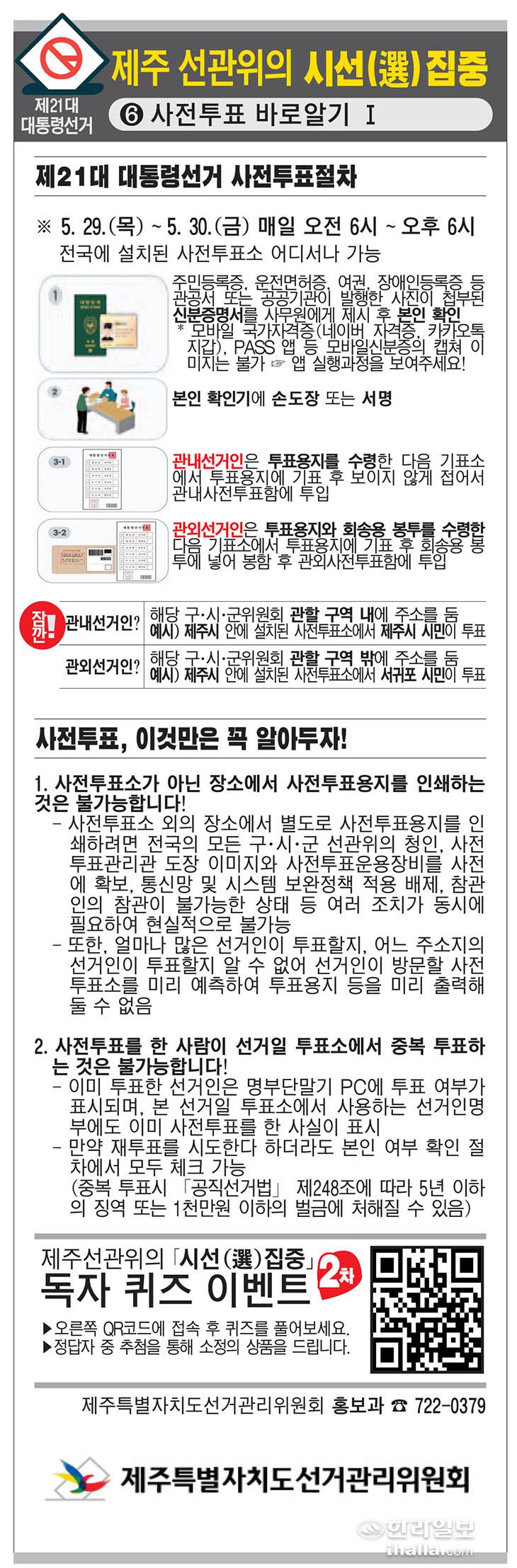 [21대 대통령선거/ 제주 선관위의 시선(選)집중] (6)사전투표 바로알기 Ⅰ