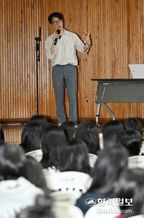 [한라일보] 의사, 작가, 유튜버. 어쩌다 보니 '세 가지 직업'을 갖게 됐다. 넷플릭스 인기 드라마 '중증외상센터'의 동명 원작 웹소설 '중증외상센터: 골든아워'를 쓴 이낙준 작가의 이야기다. '한산이가'라는 필명으로 알려진 그가 이비인후과 전문의이면서 웹소설 작가, '닥터프렌즈'를 이끄는 인기 유튜버라는 직업까지 겸하게 된 과정을 풀어냈다. 지난 26일 제주시 영평동에 있는 제주신성여자중학교 샛별관에서 열린 '스타강사와 함께하는 JDC 톡톡튀는 교육특강'에서다.