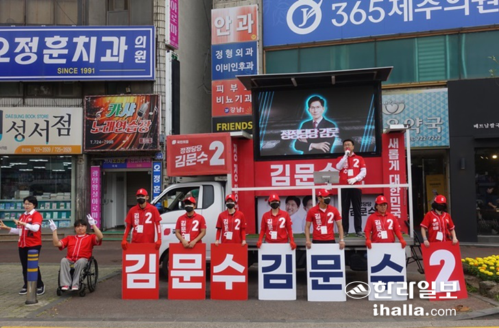 국민의힘 제주선대위는 같은 날 오후 제주시 광양사거리에서 필승 유세를 했다. 이날 유세에선 상대당 후보를 둘러싼 논란을 거론하면서 기호 2번 김문수 후보에게 표를 모아달라고 했다.