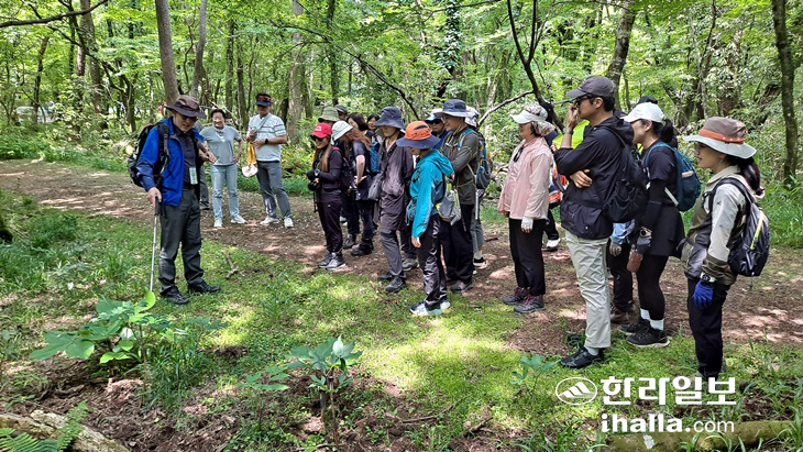 이날 탐방객을 인솔한 고태용 자연환경해설사(환경부)는 물찻오름에 대한 자연·생태·지명 등에 대한 이야기를 곁들이며 탐방의 이해를 도왔다. 독성이 강한 꽃이 곱게 핀 박새와 천남성의 맹독성에 대한 주의사항도 빼놓지 않고 설명했다.