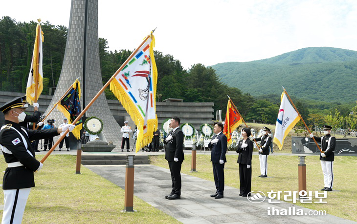 한편 이날 국립제주호국원 추념식과 함께 서귀포시 충혼묘지와 한림, 애월, 구좌, 조천, 한경, 추자, 우도, 성산, 표선, 남원, 안덕, 대정 등 도내 12개 읍면 지역 충혼묘지에서도 추념식이 치러졌다.