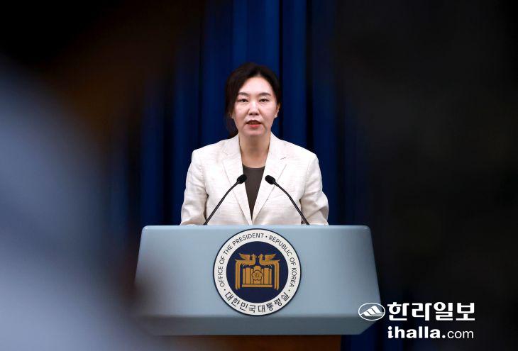 강유정 대통령실 대변인이 10일 서울 용산 대통령실 청사에서 '국민추천제' 등 현안 관련 브리핑을 하고 있다. 연합뉴스