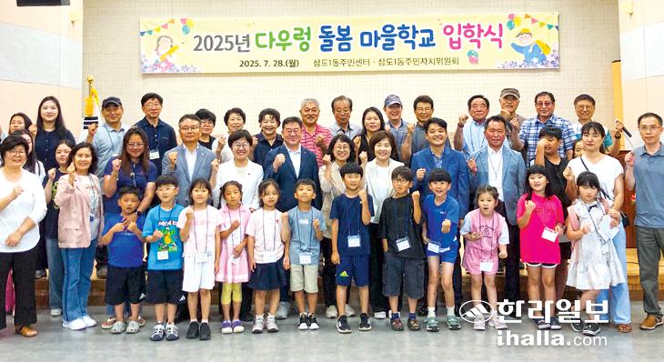 [한라일보] 제주시 삼도1동주민센터(동장 송정심)와 삼도1동주민자치위원회(위원장 이미경)는 28일 동주민센터에서 '2025년 다우렁 돌봄 마을학교 입학식'을 개최했다.