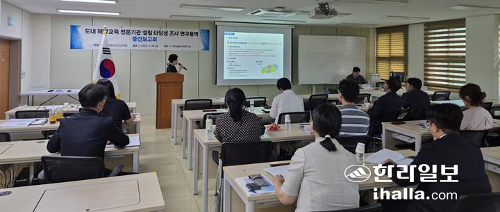[한라일보] 제주지역 해양교육 전문기관 설립 논의가 본격화 되고 있다.제주특별자치도교육청은 30일 제주융합과학연구원에서 '해양교육 전문기관 설립 타당성 조사 연구용역 중간 보고회'를 열고, 공간 구성, 입지 선정, 프로그램 운영계획 등 기본구상안을 공개했다.
