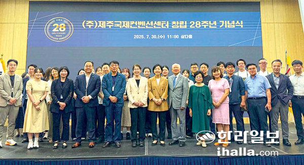 [한라일보] 제주국제컨벤션센터(ICC JEJU)는 지난달 30일 창립 28주년 기념식을 개최했다. 이날 기념식에서는 ICC JEJU 설립을 주도했던 고(故) 신구범 전 제주도지사의 공로를 기리며 배우자인 김시자 여사에게 공로패를 전달했다.