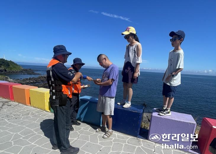 지난 5월부터 활동을 시작한 '공항 안전 불법 드론 감시단' 계도 활동 모습. 제주도 제공