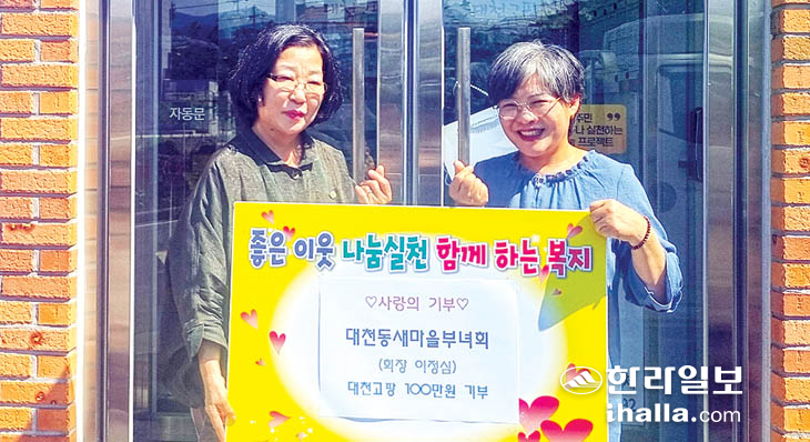 서귀포시 대천동새마을부녀회(회장 이정심)는 지난달 24일 대천동(동장 현순재) 나눔냉장고 '대천고팡'에 어려운 이웃을 돕기 위한 성금 100만원을 기탁했다.