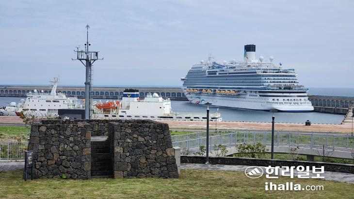 서귀포시 강정항에 입항한 크루즈. 제주도 제공