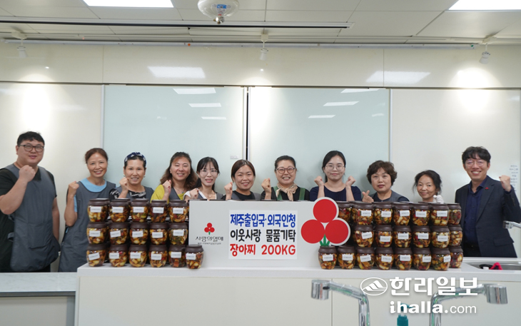이날 기탁된 물품은 제주출입국·외국인청이 제주농업기술센터 제주음식연구회(회장 홍임숙)와 연계해 제주에 정착한 이민자들을 대상으로 진행하고 있는 '제주 음식 만들기 교육'에서 참여자들이 직접 만든 것이다.