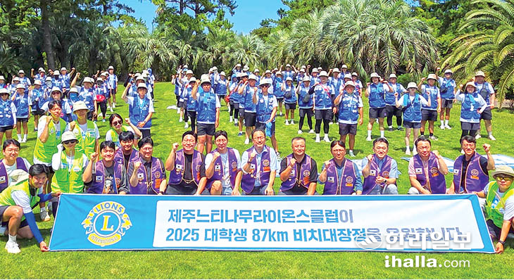 국제라이온스협회354-G(제주)지구 제주느티나무라이온스클럽(회장 오태헌)은 지난 22일 '대학생 87㎞ 비치대장정' 프로그램을 후원하고 참가자들을 격려했다.