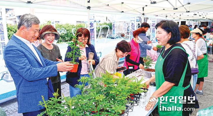 [한라일보] 김완근 제주시장은 지난 22일 새마을알뜰매장에서 열린 '2025 탄소중립사회를 향한 녹색새마을 나눔장터'에 참석해 행사를 주관한 새마을부녀회 회원들을 격려했다.