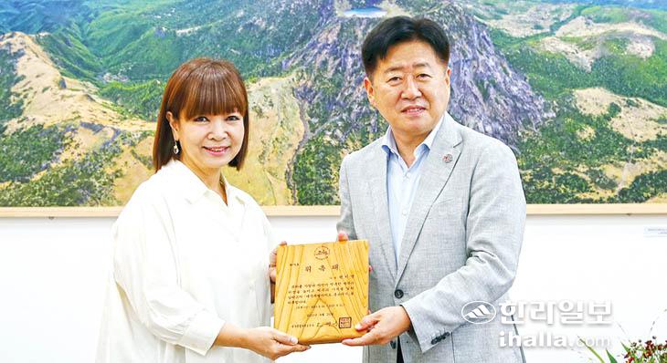 오영훈 제주도지사는 지난 22일 제주도청 집무실에서 원미연 씨에게 제주도 홍보대사 위촉장을 수여했다.