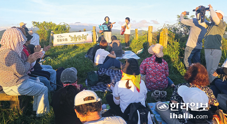 사단법인 오름인제주(회장 강현재)는 지난 23일 제주시 한림읍 금악리 정물오름에서 정화활동과 함께 음악회를 개최했다.