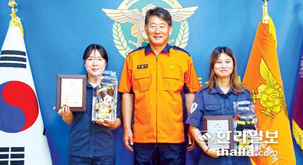 [한라일보] 제주소방서(서장 전철하)는 지난 22일 구급대 현장실습에서 우수한 성과를 거둔 제주한라대학교 응급구조과 김정아·강지혜 학생에게 상패를 수여했다.