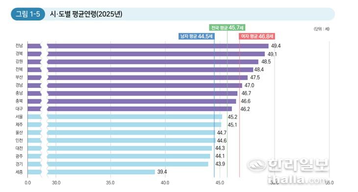 평균 연령 45.1세…사회복지 분야 지출 전국 하위권